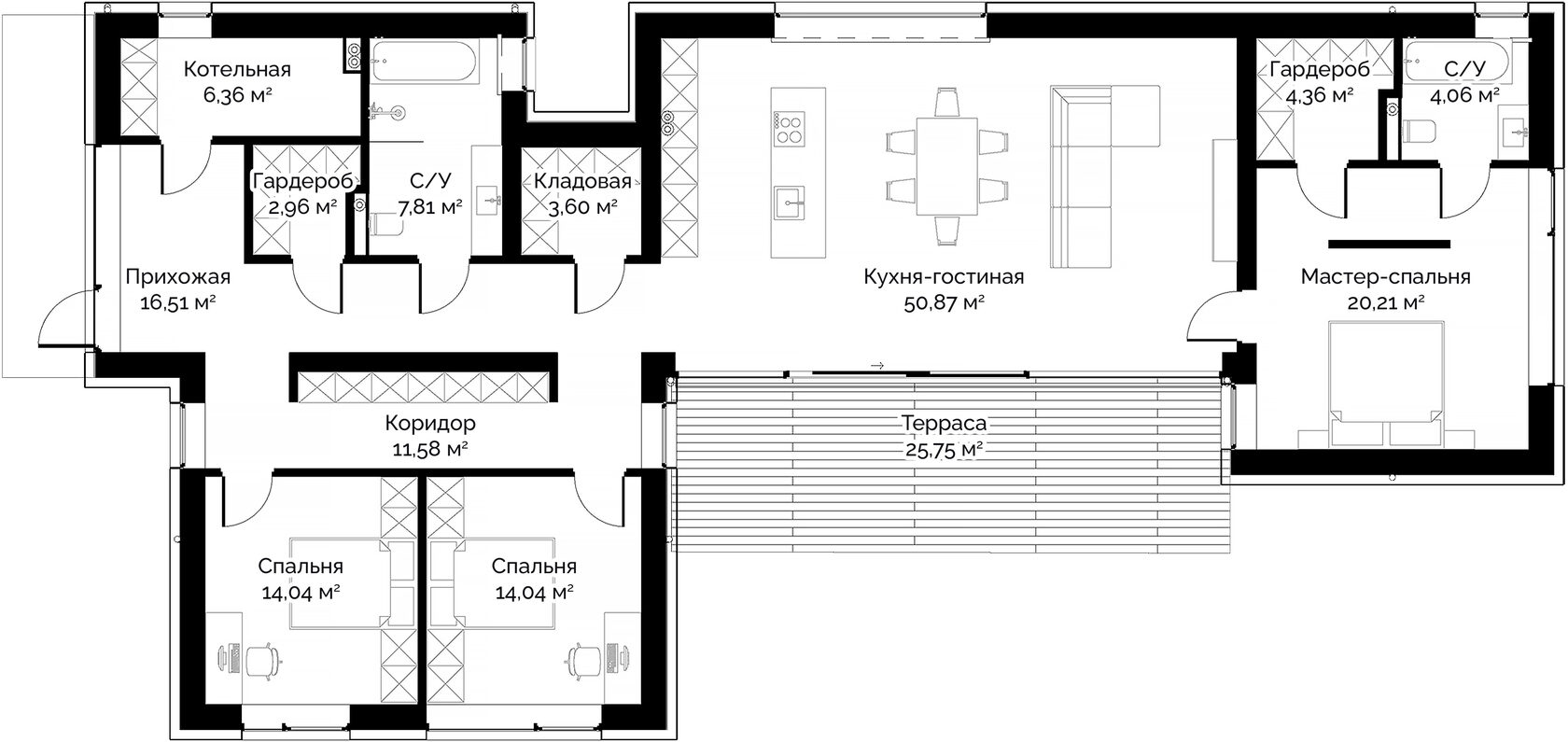 — Двухкамерный стеклопакет, алюминиевая рама;