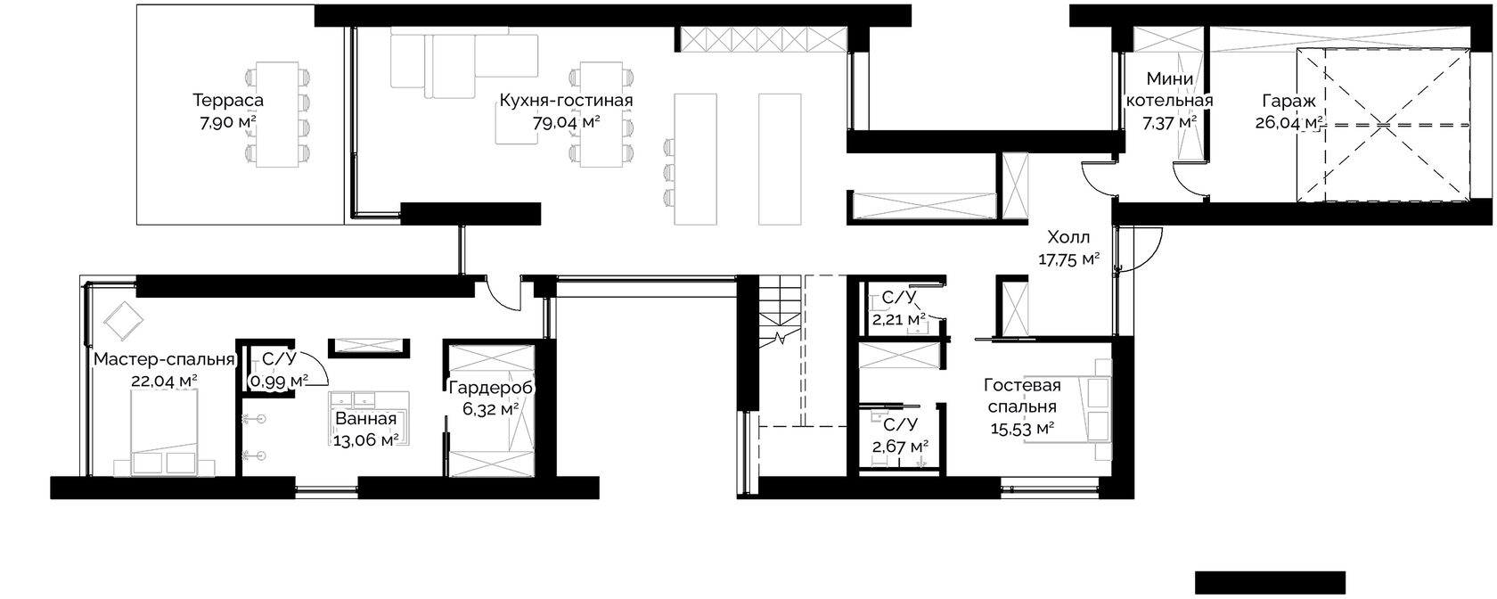 — Ригельная плитка, доска из лиственницы, фиброцементные панели;